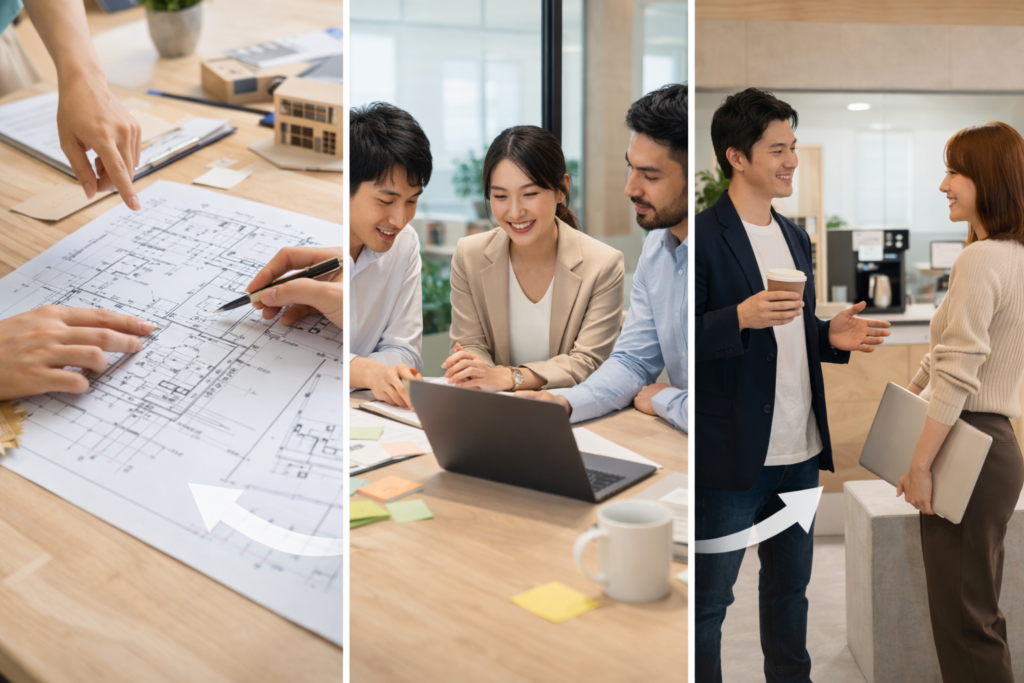 企業ごとの課題や働き方を丁寧にヒアリングし、最適なオフィス空間をご提案します。
